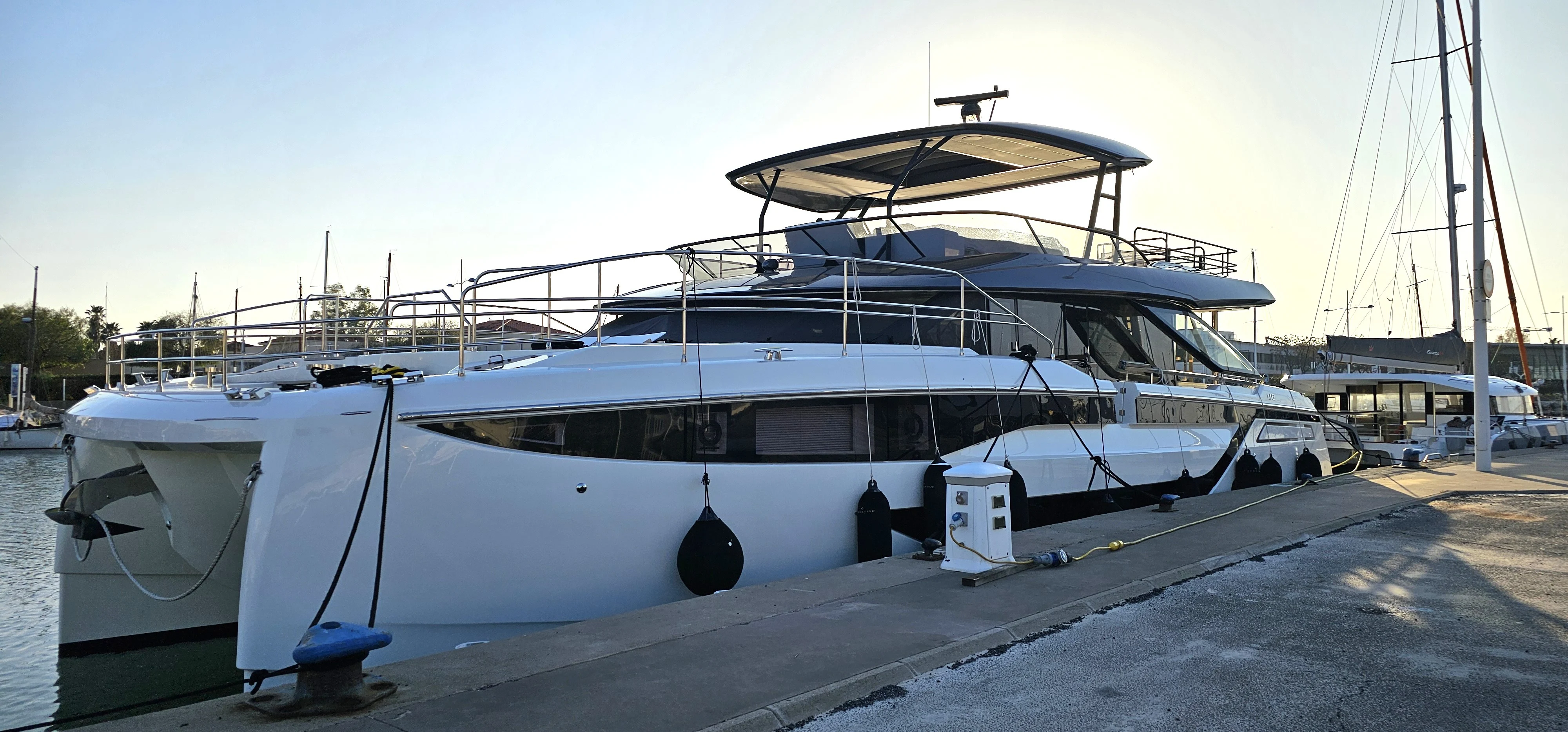 The Prestige M8 makes a strong statement with its impressive volumes. Bright interiors, premium finishes, and expansive living spaces. A flagship by Prestige Yachts that redefines the standard for power multihull yachts.