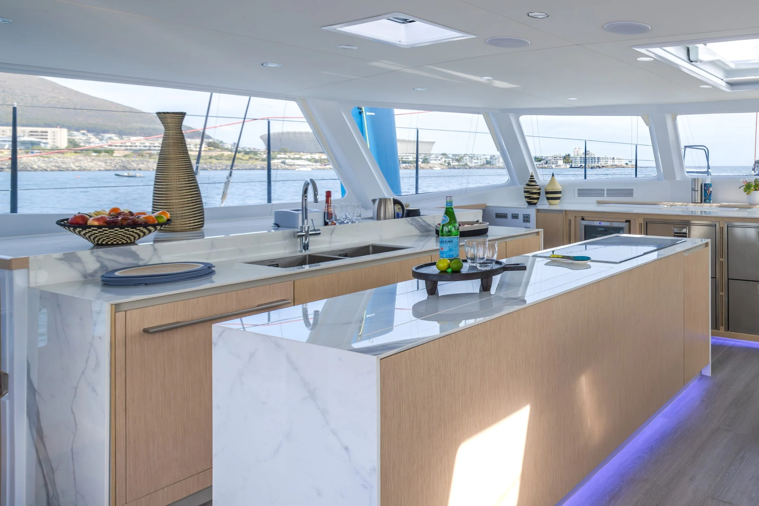 Designed for demanding sailors, this nearly 60-foot catamaran offers a unique sailing experience: slender hulls, carbon/epoxy construction, and performance close to a racing multihull… combined with true luxury cruising.