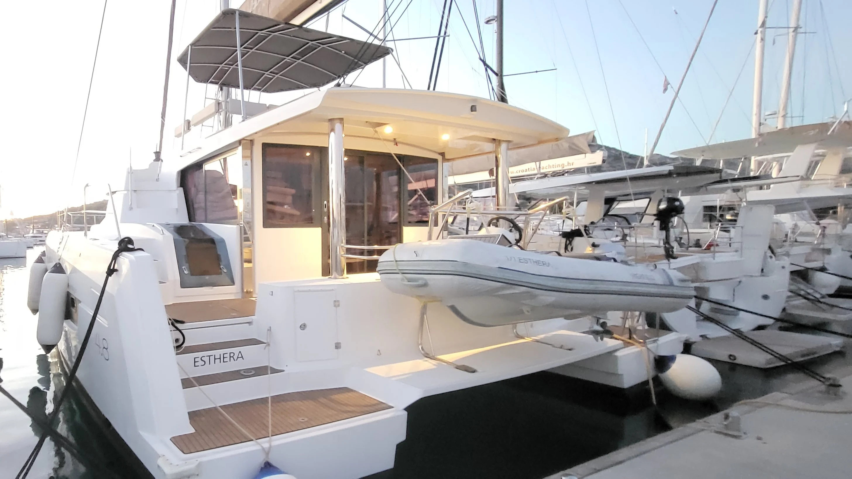 The Bali 4.8 is a 48-foot catamaran known for its “Open Space” design, featuring a fully open living area, a rigid forward cockpit, a spacious flybridge, and layouts of up to 6 cabins with private bathrooms.